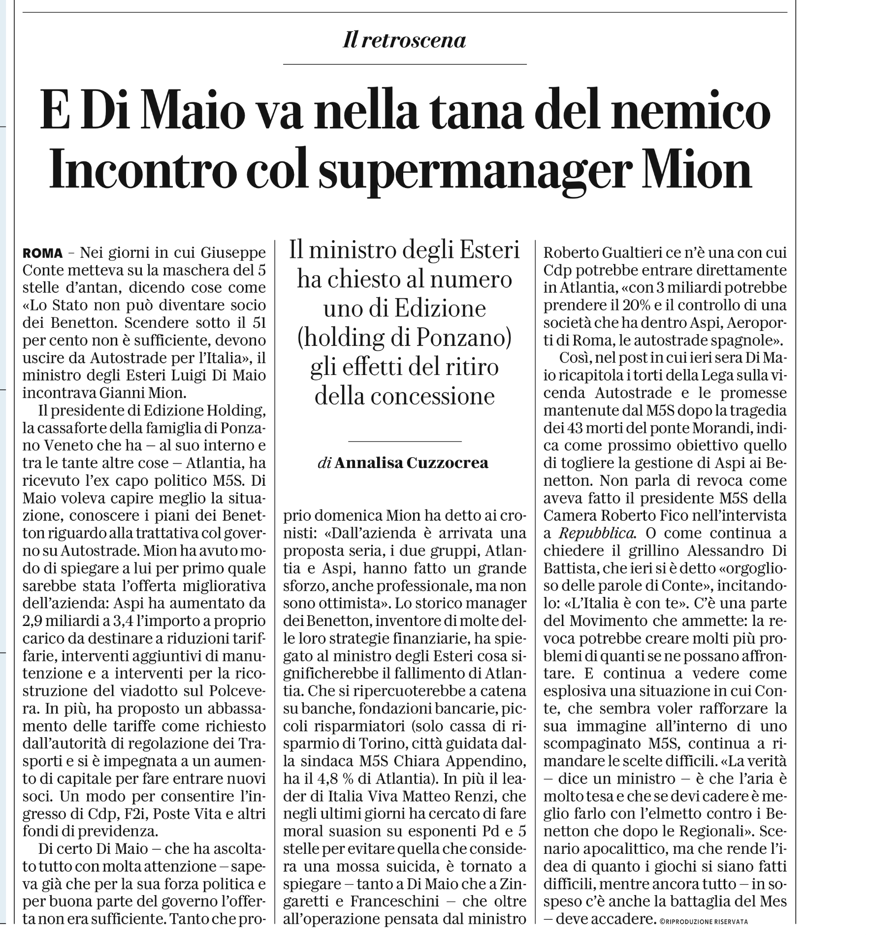 E Di Maio va nella tana del nemico. Incontro col supermanager Mion