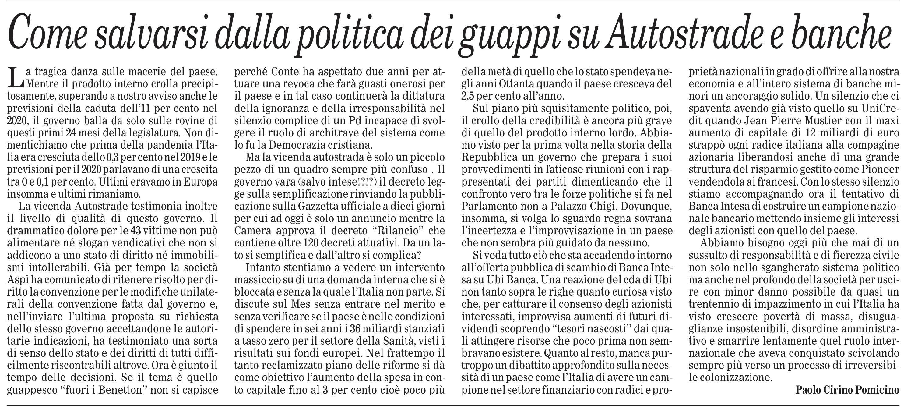 Come salvarsi dalla politica dei guappi su Autostrade e banche