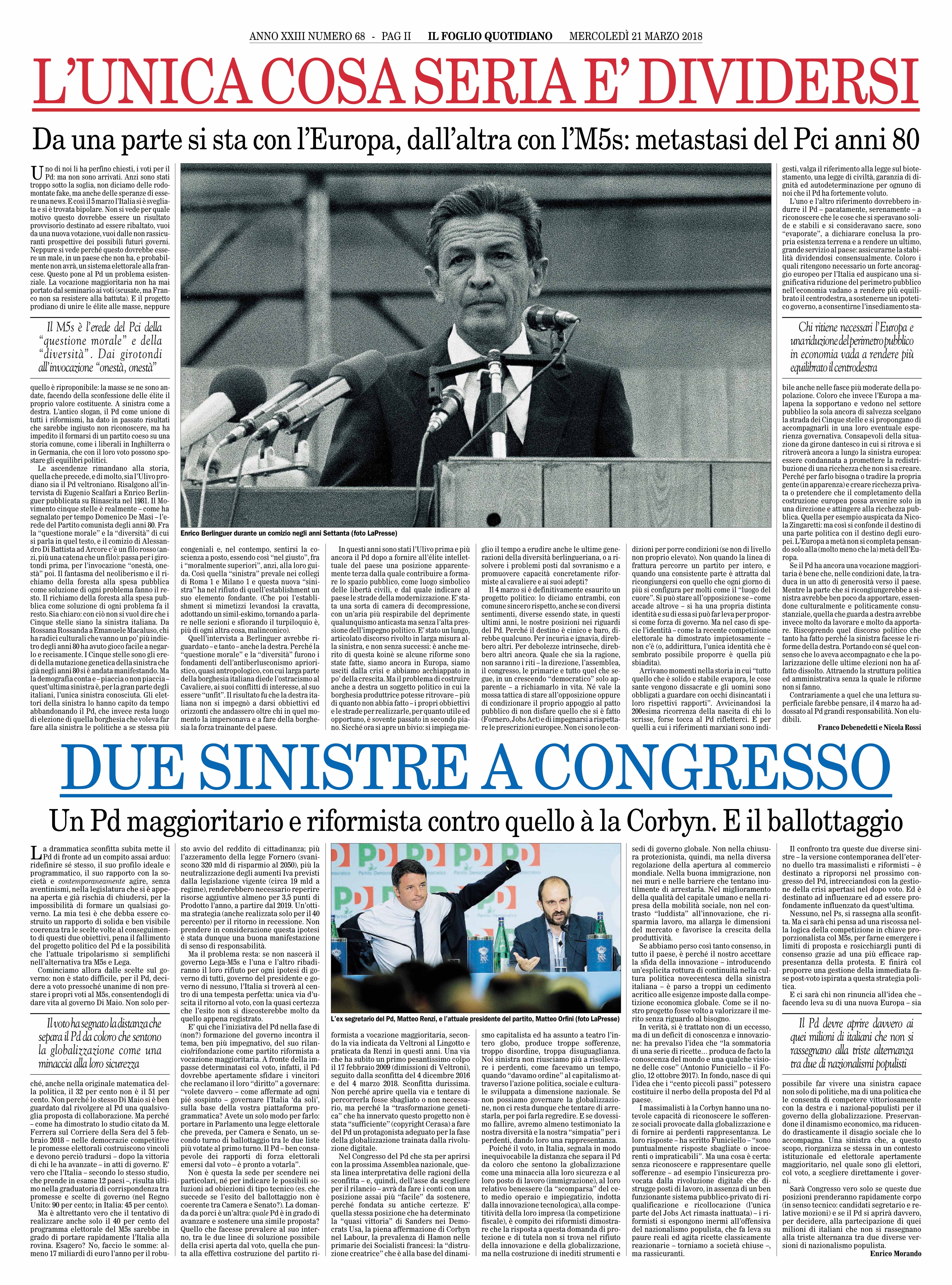 di Claudio Cerasa – Il Foglio, 14 marzo 2018