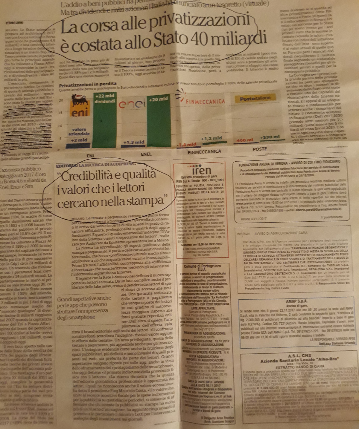È vero che il titolo posto all’articolo (“La corsa alle privatizzazioni è costata allo Stato 40 miliardi”) non corrisponde al testo, dove Ettore Livini riconosce “i vantaggi economici non quantificabili” dell’averci consentito di agganciare l’euro, oltre ad aver generato “valore nelle ex-imprese statali” e contribuito “a sviluppare il sistema finanziario e ad ammodernare lo Stato”. Vorrei tuttavia fare la mia parte per dare “credibilità e qualità […] valori che i lettori cercano nella stampa” (come recita il titolo nella stessa pagina) aggiungendo un paio di chiose.